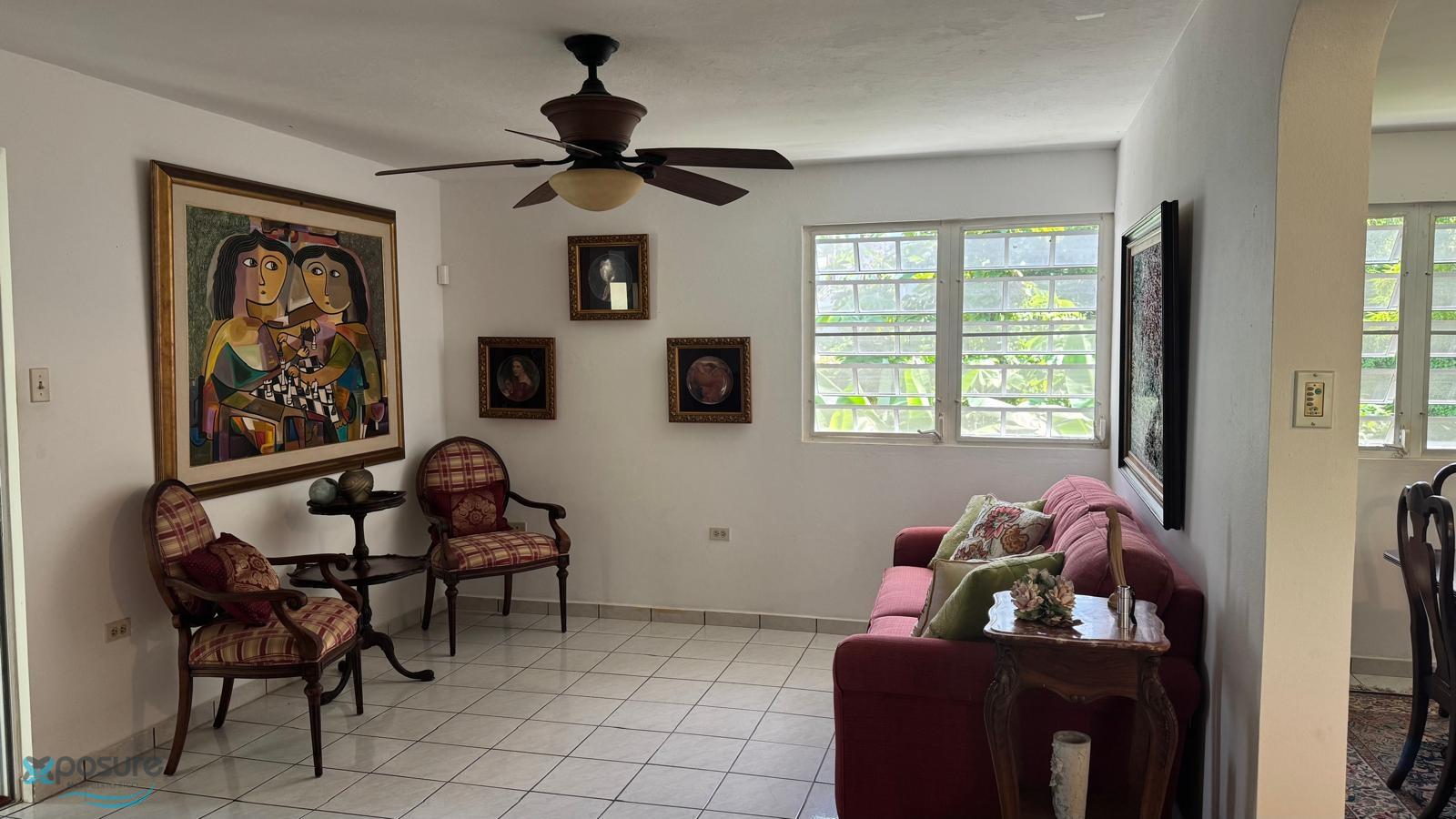 Prime location in Mayaguez, with quick access to hospitals, universities, shops, and more. The property features 3 bedrooms, 2 bathrooms, a living room, dining room, remodeled kitchen, family room, and a terrace ideal for family gatherings. Includes: 4 air conditioners, a refrigerator, stove, washer, dryer, transfer switch with generator, and a motorized cistern. 935 square meters of land and 1,490 square feet of construction. Quiet neighborhood on a cul-de-sac..
