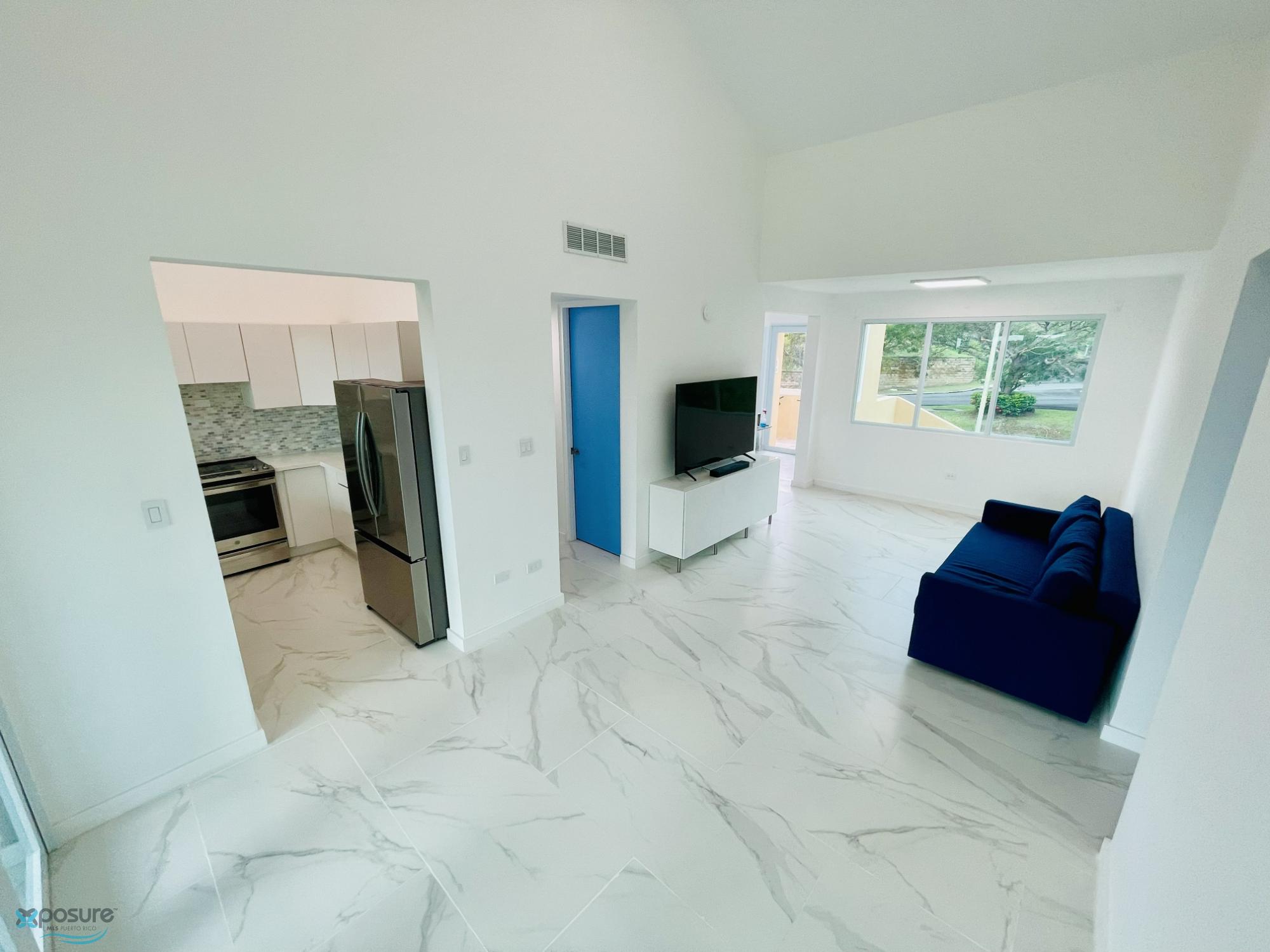 Impresionante ático en la exclusiva comunidad cerrada de Costa Dorada - Rio Grande. Ático completamente renovado con vistas al mar. Esta propiedad lista para entrar a vivir cuenta con todo nuevo: electrodomésticos de alta gama (lavavajillas, estufa/horno, refrigerador, calentador de agua, lavadora/secadora), pisos de baldosas estilo Carrara, pintura blanca fresca y accesorios nuevos, incluyendo interruptores, enchufes e iluminación. Características principales: - Terraza en la azotea de 130 m² con impresionantes vistas al mar - Amplio balcón en la planta baja con vistas al mar - 3 dormitorios, 4 baños - Suite principal con vestidor y baño con doble lavabo - Aire acondicionado central nuevo + minisplits en las habitaciones de invitados - Persianas opacas nuevas en todos los dormitorios - Medio baño en la azotea y aseo de invitados. Mejoras del edificio: Techos y pintura exterior nuevos en todo el complejo. Incluido: Totalmente amueblado con camas, sofá, televisores y todos los artículos que se muestran en las fotos (excepto 3 cuadros). Dos plazas de aparcamiento más espacio para carrito de golf. Baños: Inodoros, lavabos, armarios y encimeras nuevos en todos los baños. La cocina cuenta con encimeras, gabinetes y acabados de primera calidad. Solicite un enlace para ver un video que muestra todo el condominio..