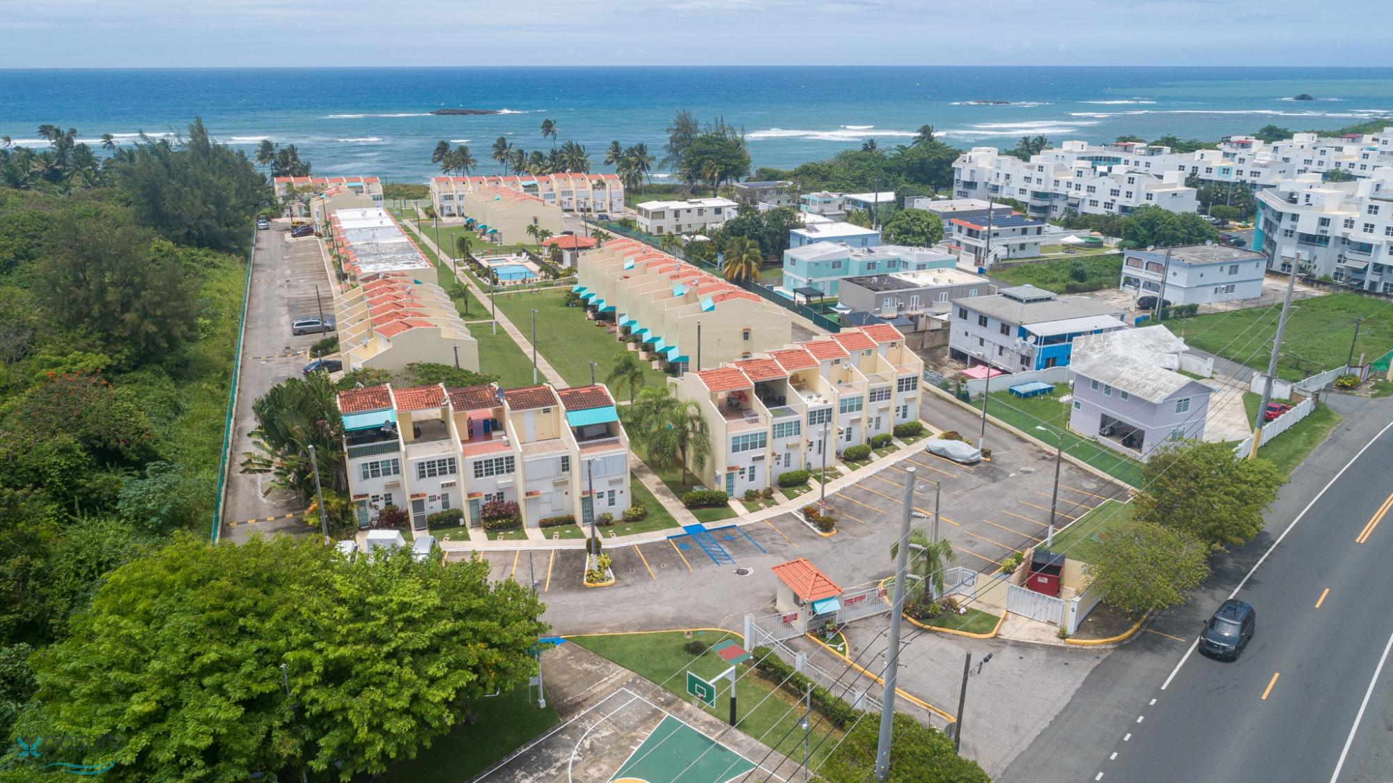Experience true oceanfront living in this stunning three-level townhouse located in the gated community of Atlantic View Court, just west of Dorado. This 3-bedroom, 2.5-bath residence offers direct, unobstructed views of the Atlantic Ocean and overlooks a quiet, uncrowded, and surfable beach where the soothing sound of the waves becomes part of everyday life. The home has been thoughtfully remodeled, featuring a modern open-concept living area and a brand-new kitchen equipped with an induction cooktop with convection oven, dishwasher, premium refrigerator/freezer, and an additional deep freezer for extended storage. Ultra-premium tile flooring enhances the living room and common areas, complemented by a large pull-down screen ideal for a projector entertainment system. The layout spans three levels, with the primary ocean-view bedroom located on the top floor, offering breathtaking views of the breaking waves, as well as an oceanfront office perfect for remote work with inspiring scenery. Three private terraces provide spectacular ocean breezes, sunsets, and abundant natural light throughout the home. Residents enjoy direct private access to a swimmable and surfable beach lined with coconut palms, often completely uncrowded, along with exceptional conditions for water sports such as windsurfing, kitesurfing, hydrofoiling, and swimming to the nearby offshore island. Community amenities include adult and children’s swimming pools, a gazebo, basketball court, controlled access, and two assigned parking spaces. HOA fees are approximately $177 per month, with annual condo insurance and CRIM taxes averaging $1,700 and $1,100 respectively. Short-term rentals are not permitted, preserving a peaceful residential environment. Ideally located in Vega Baja, this property offers the rare opportunity to enjoy oceanfront living at a fraction of the cost of Dorado beachfront properties, while remaining within convenient distance of major roads, schools, shopping, and dining. This is a truly exceptional beachfront townhouse with modern upgrades, multiple private terraces, and a serene coastal setting, shown by appointment only..