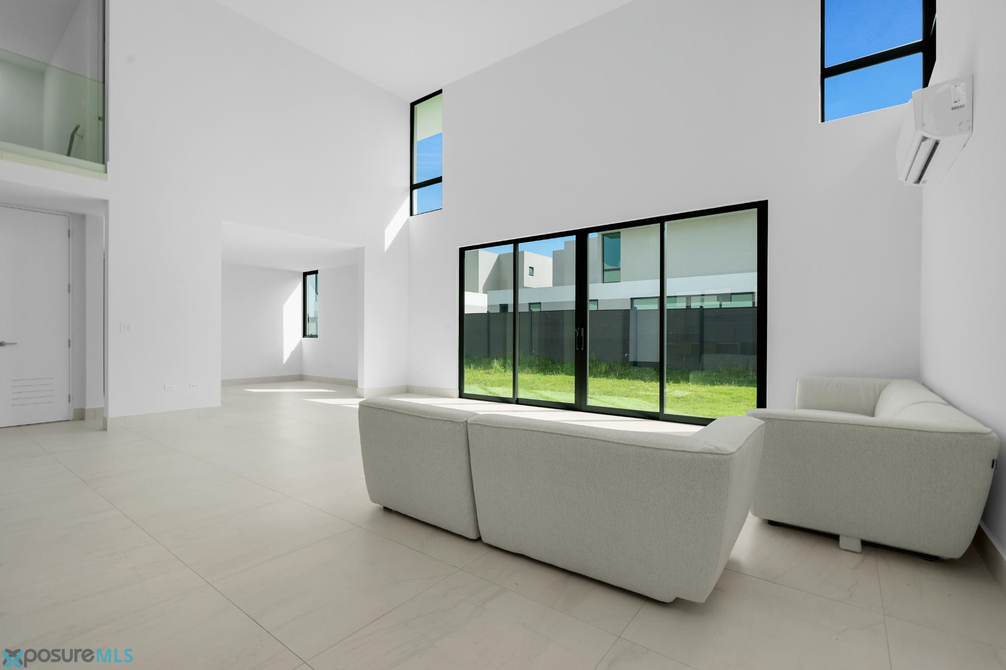 Beautiful, spacious, and modern residence within one of the most modern, planned, and exclusive communities in the metropolitan area. This two-story Monaco Flex model home offers 3,650 sq ft of living space, a living room with 18-foot ceilings and abundant natural light, a modern kitchen with a pantry and new appliances, a family room, storage room, laundry room, and a double carport. It features four large bedrooms with walk-in closets and 4.5 bathrooms, air conditioning throughout, a generator, and a patio that wraps around the property. Adding to its exclusivity and security, Riviera Parkview boasts double-gated access, 12 miles of walking and jogging trails, spectacular common areas, a clubhouse with an infinity pool, eight tennis courts, six beach tennis courts, a gym, pickleball and paddle tennis courts, a rooftop restaurant, five gazebos, multiple children's play areas, and a dog park. All of this is located in one of the fastest-growing commercial areas, just two traffic lights away from a golf course and driving range. Come and share and make this new house your home..