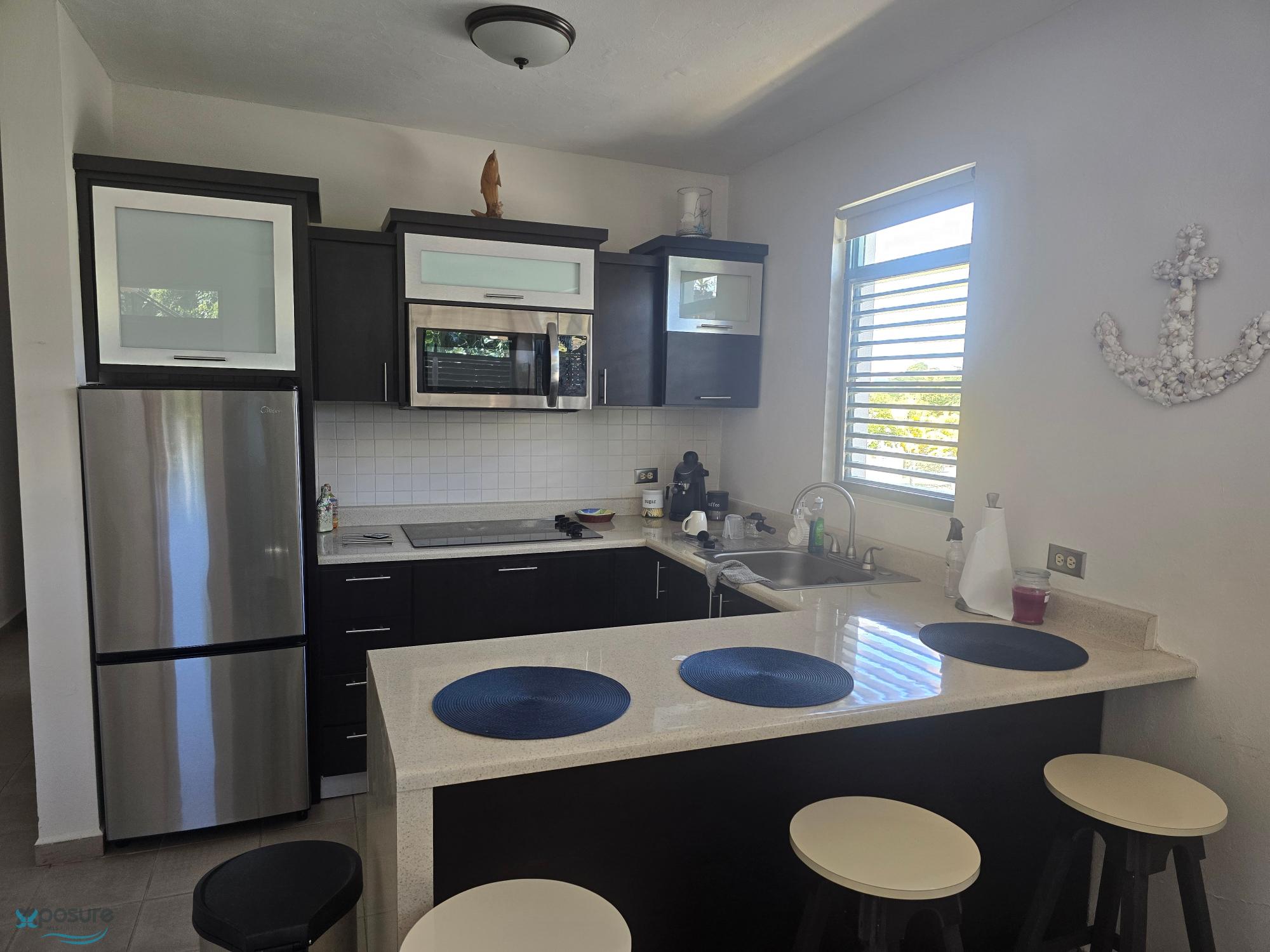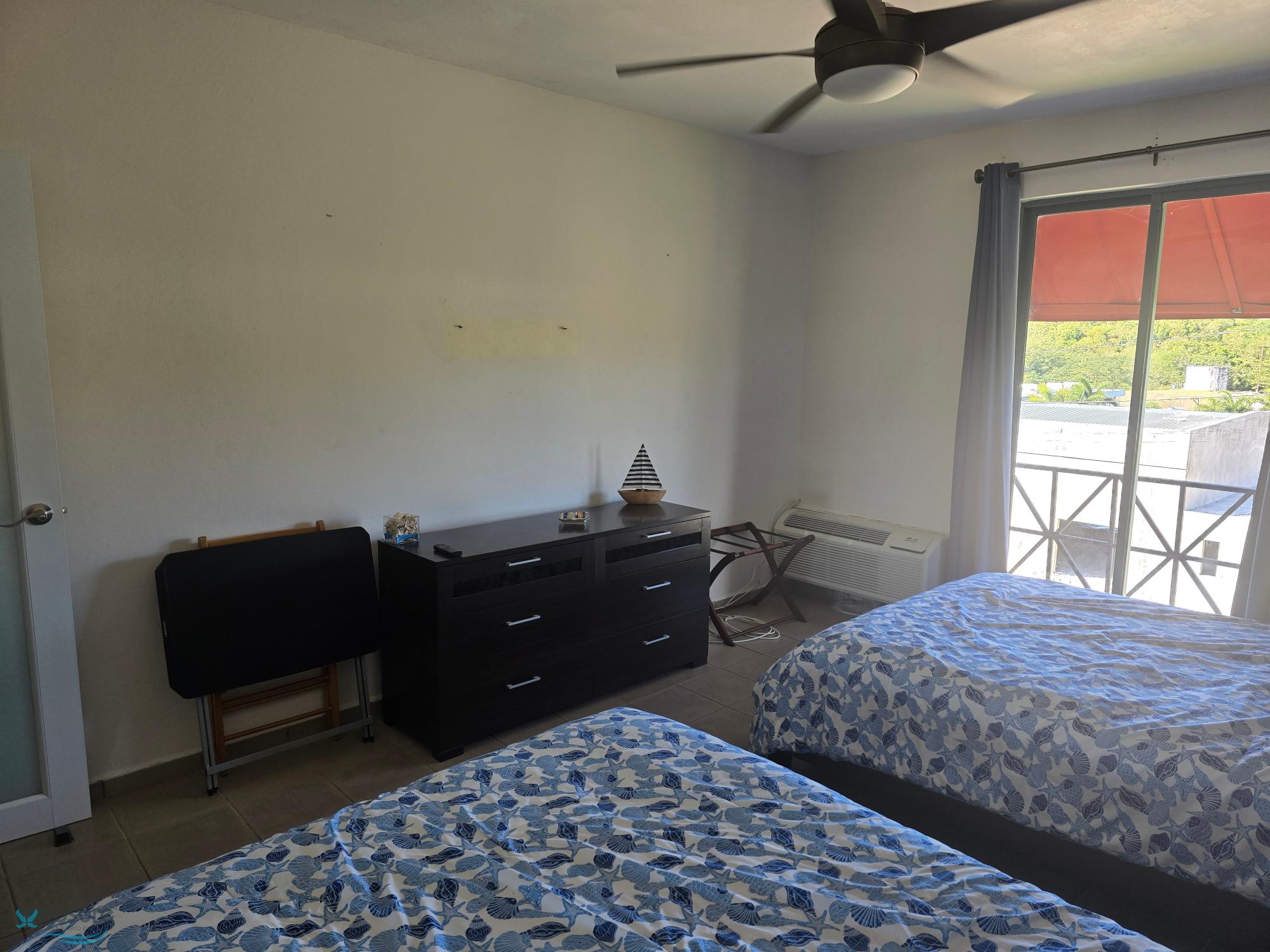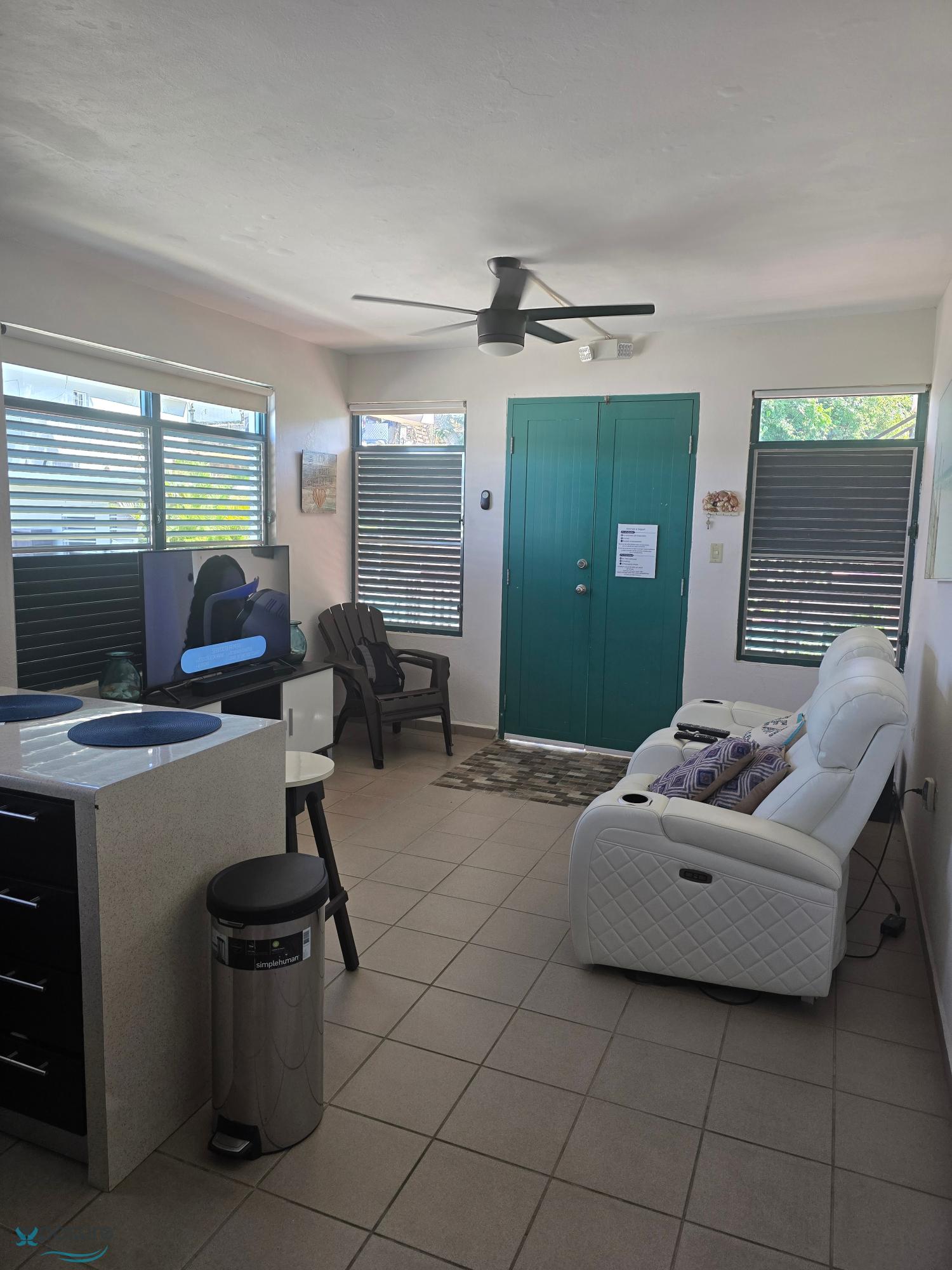 Apartment 504 is available for rent in Crash Boat Apartments, located on Pedro Albizu Campos Avenue in Aguadilla. The apartment features one bedroom with two beds, a living room, and a kitchen. It comes fully furnished and includes a refrigerator, stovetop, microwave, coffee maker, television, reclining sofa, two brown chairs, TV stand, dresser, nightstand with lamp, two ceiling fans, and three stools. Rent includes internet, cable TV, and water. The complex has a swimming pool. Excellent location near Crash Boat Beach, restaurants, and other points of interest; ideal for living..
