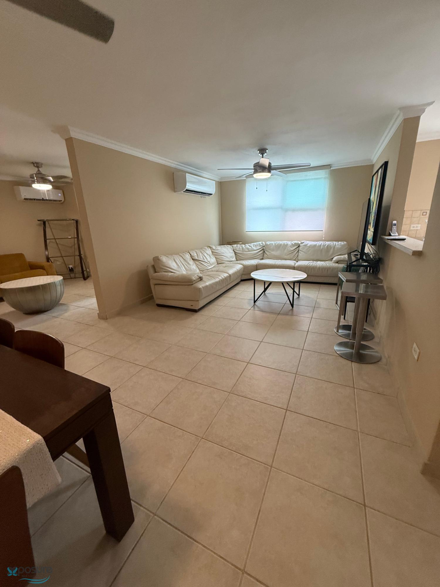 Walk-Up Apartment – Cond. Altos de Escorial, Carolina. Beautiful and comfortable fully furnished apartment for rent, located on the second floor of the exclusive Cond. Altos de Escorial, a gated community with controlled access and resort-style amenities. The apartment features 3 bedrooms, 2 full bathrooms, a living room, dining room, kitchen, and family room, offering a fresh, spacious, and well-distributed environment. It is equipped with: 36 BTU air conditioning in the living room and 18 BTU in the family room, 3 wall-type air conditioning units, 6 ceiling fans, security windows, security cameras, and a water filter. Appliances included: stove, refrigerator, microwave, washer, and dryer. HOA fee: $166. Community amenities: Swimming pool, gym, sports and tennis courts, walking/jogging track, children's playground, green areas, electric vehicle charging stations, 24/7 security, double access control, and resident parking. Prime location, close to shopping centers, supermarkets, restaurants, schools, and with easy access to main roads. Excellent option. for those seeking comfort, security and quality of life in an exclusive community."..