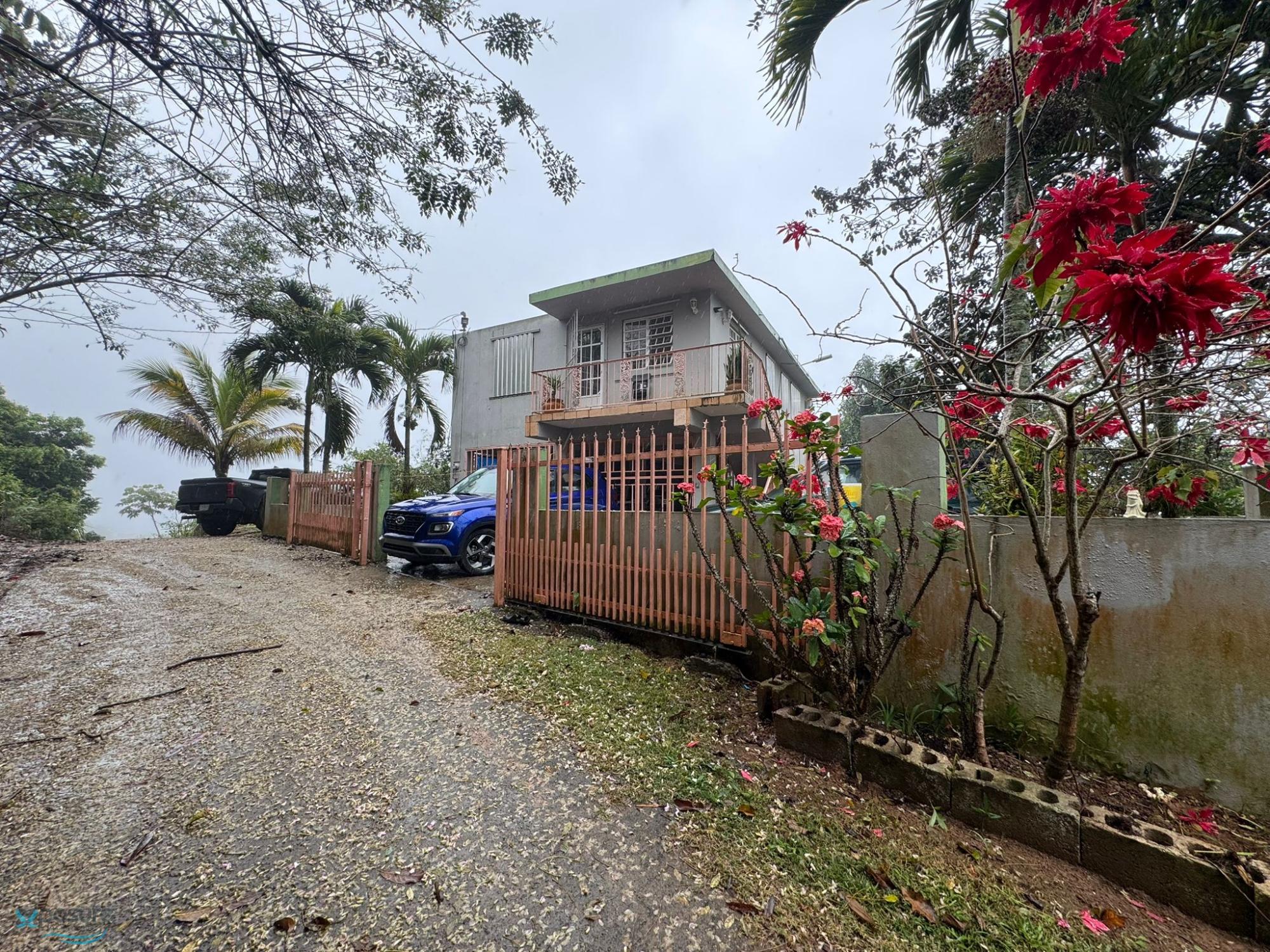 Residential property located in the Caguana Ward, Las Piñas Sector of Utuado, Puerto Rico, with approximately 9 acres of land in an elevated, cool, and highly private setting, with paved access to the property. The main residence is a two-story concrete structure. The upper floor features two bedrooms, including a spacious master bedroom with a walk-in closet and access to the master bathroom, an open-plan living and dining area, and a functional kitchen. The property is being sold fully furnished and includes a refrigerator, stove, furniture, bedroom sets, light fixtures, and an air conditioner in the master bedroom. The lower floor has a separate one-bedroom apartment with a full bathroom and kitchen, suitable for guests, family members, or additional use. There is also covered parking for two vehicles. Improvements and amenities include a 600-gallon cistern, storm shutters, and a solar backup system. The property has potable water service provided by the Puerto Rico Aqueduct and Sewer Authority and electricity service from the public grid. The land offers usable areas with potential for light agriculture, landscaping, or recreational activities, with open views and a rural setting. Direct financing is available from the owner with an approximate down payment of 50% of the sale price. The purchase is not contingent upon a bank appraisal, representing a viable option for qualified buyers seeking flexibility in the terms of acquisition..