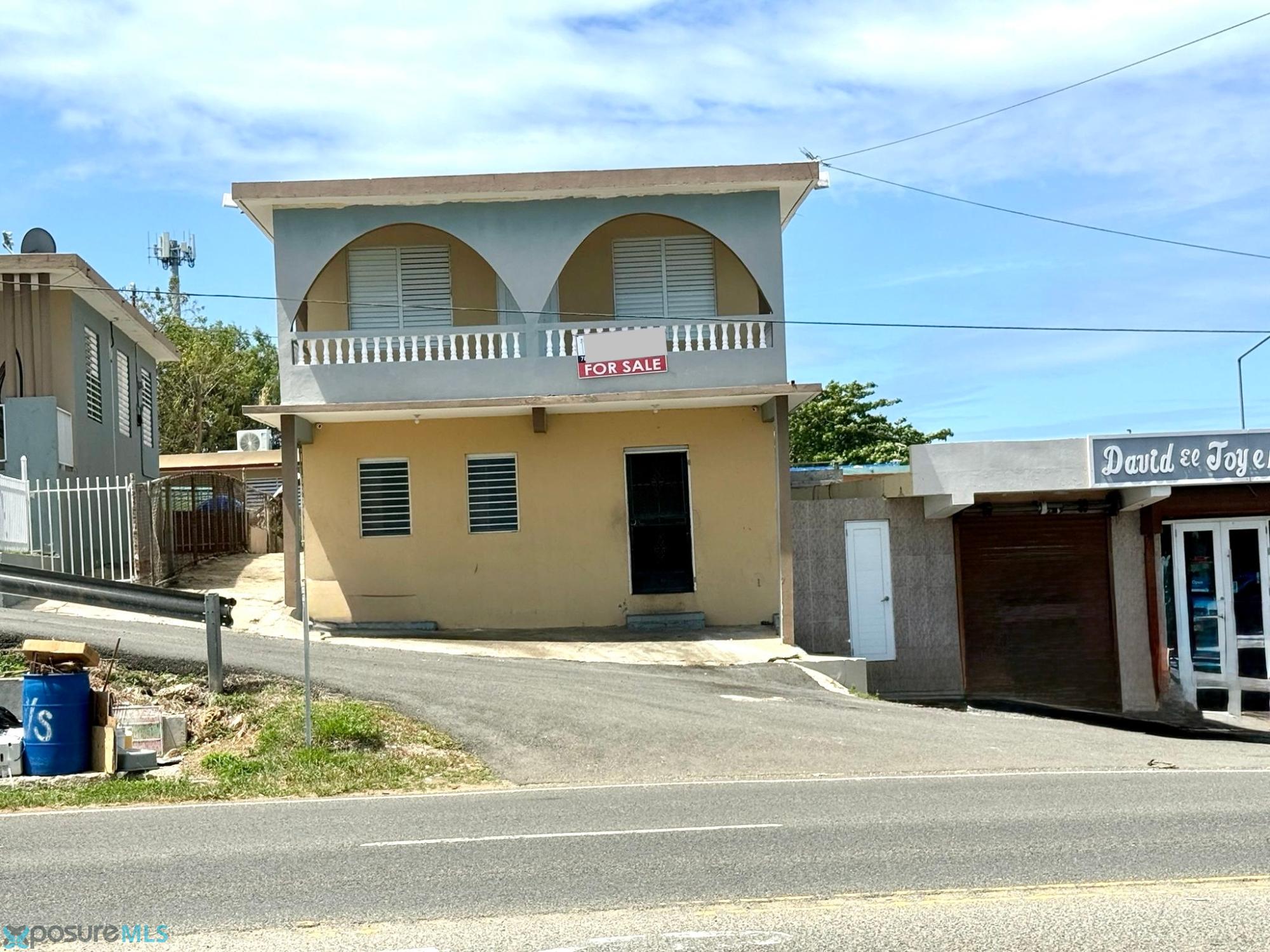FOR SALE – AGUADILLA, Borinquen- Road 107. We are pleased to present this spectacular mixed-use property, ideal for those looking to invest or combine business and residential living in an excellent location. The first level features a spacious commercial area of approximately 1,265 sq. ft. and one bathroom, perfect for establishing a business with great visibility. The second level offers a residential space that includes two bedrooms, a kitchen, and one bathroom, providing comfort and functionality in the same property. Total sq.ft. 2,356. Its excellent location on Road 107, one of the main roads in Aguadilla, provides high visibility, easy access, and steady traffic flow, making it an ideal opportunity for investors. Sale Price: $365,000..