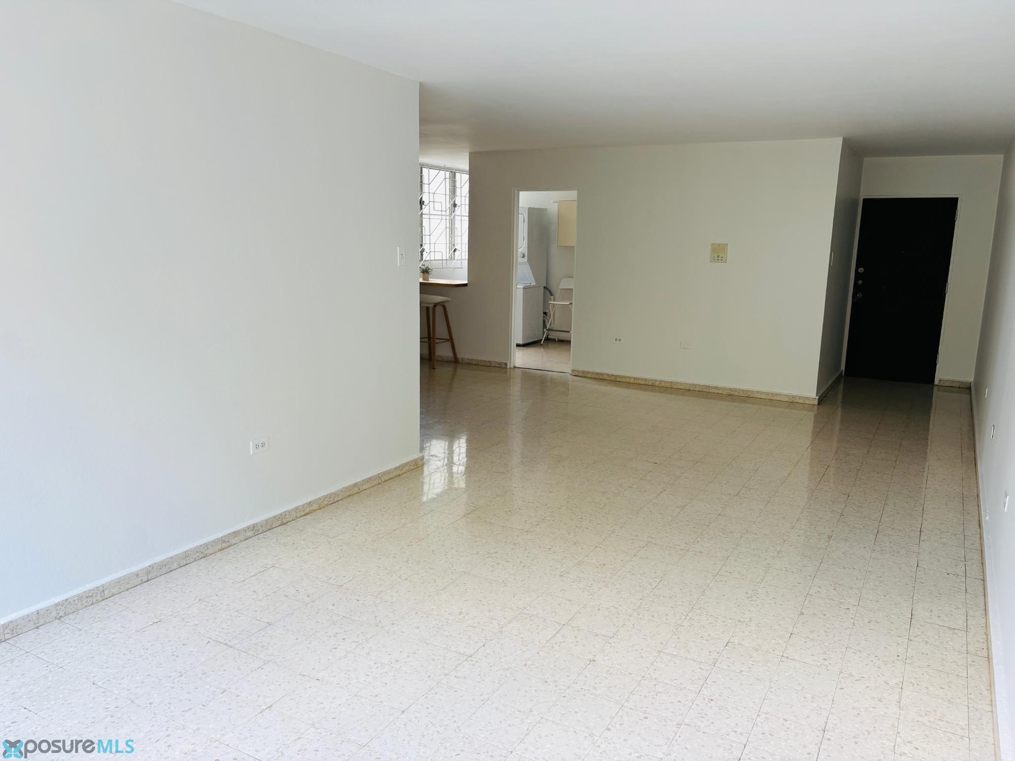Spacious 3-bedroom, 2-bathroom apartment in the El Bilbao Condominium in Hato Rey, in excellent condition. Features include abundant natural light, terrazzo floors, and all necessary appliances. The apartment comes equipped with one parking space, a refrigerator, a water heater, a washer and dryer, and two air conditioners. Located in a gated community on a quiet tree-lined street, just steps from a large community park. Conveniently close to shopping centers, medical offices, and the central banking district of Hato Rey..